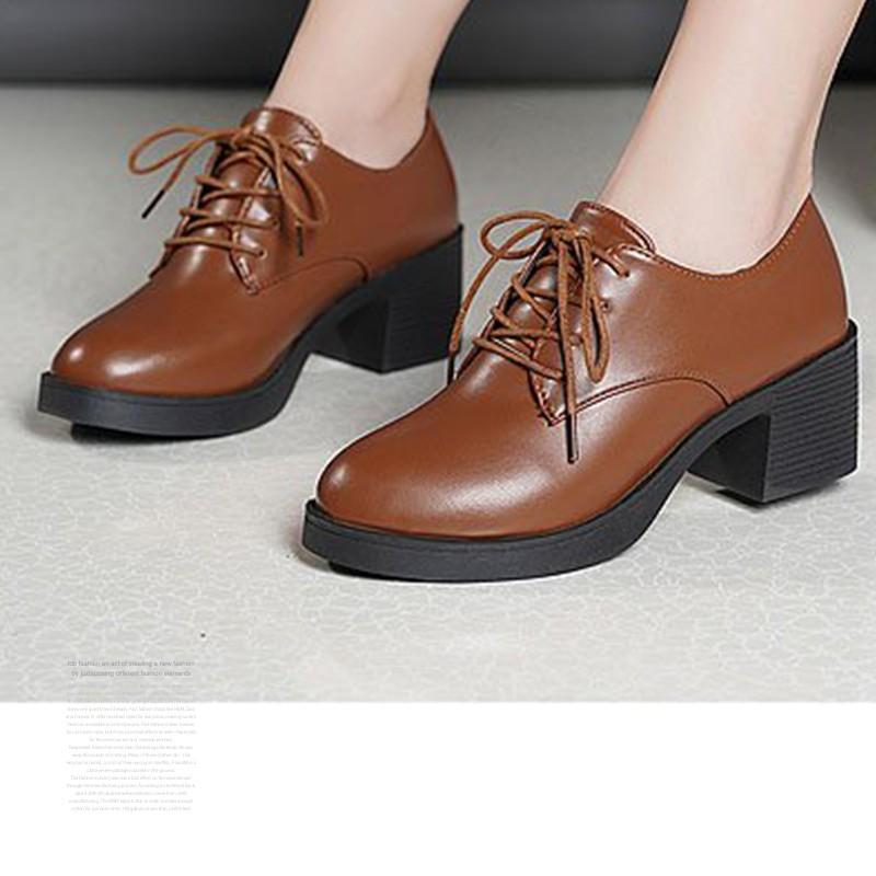 シューズ レースアップ ヒール レディース ブラック ブラウン 22cm 25cm 太ヒール マニッシュシューズ 紐靴 厚底 ショートブーツ 革靴 黒 茶 靴 大人 シューズ si0050 カジコム 通販 Yahoo ショッピング